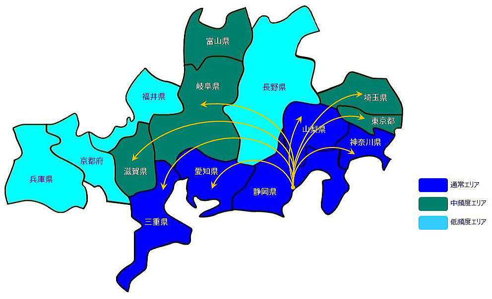 静岡県焼津市を拠点に、静岡県全域・愛知県・三重県・山梨県・神奈川県を主とし、岐阜県・富山県・滋賀県・東京都・埼玉県へも伺っており ます。